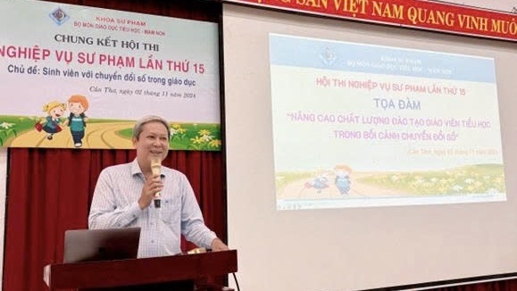 Trong chuỗi các hoạt động của hội thi nghiệp vụ sư phạm năm nay, buổi toạ đàm “Nâng cao chất lượng đào tạo giáo viên trong bối cảnh chuyển đổi số” được tổ chức sáng ngày 02/11/2024. Buổi toạ đàm có sự tham gia của đại diện Ban giám hiệu một số trường tiểu học của thành phố Cần Thơ như ThS Mạch Lệ Xuân (Hiệu trưởng trường TH Ngô Quyền), ThS Nguyễn Thuỵ Nhã Trúc (Hiệu trưởng trường TH Kim Đồng).