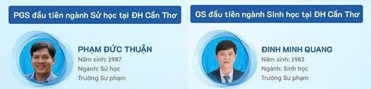 Đặc biệt, trong đợt này, Trường Sư phạm vinh hạnh có GS.TS. Đinh Minh Quang là giáo sư đầu tiên chuyên ngành Sinh học của Đại học Cần Thơ, ông cũng là giáo sư trẻ nhất Việt Nam chuyên ngành Sinh học, Ngoài ra, PGS.TS Phạm Đức Thuận cũng là pho giáo sư trẻ đầu tiên chuyên ngành Sử học của Đại Học Cần Thơ.