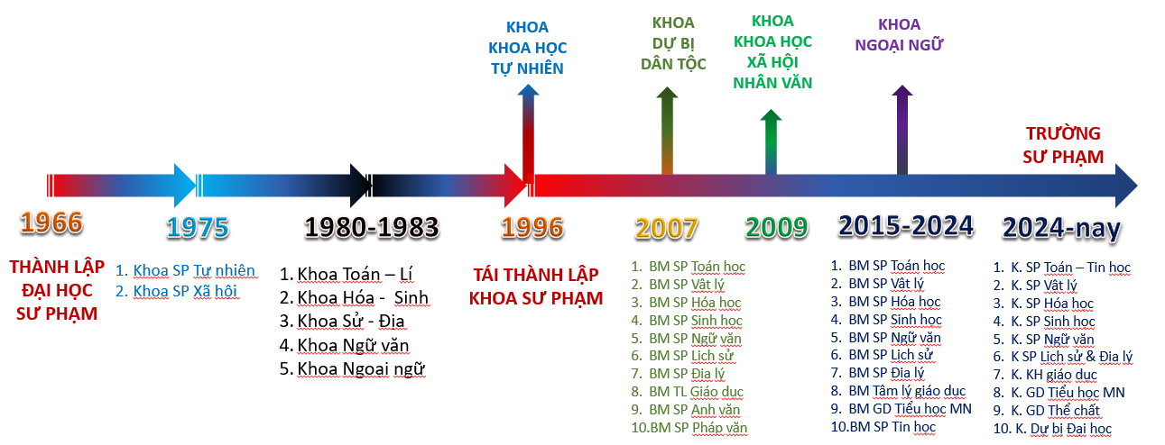 - Tầm nhìn: Trường Sư phạm sẽ trở thành trung tâm đào tạo, bồi dưỡng đại học và sau đại học có chất lượng, nghiên cứu khoa học gắn với thực tiễn giáo dục Việt Nam và xu thế phát triển giáo dục thế giới.