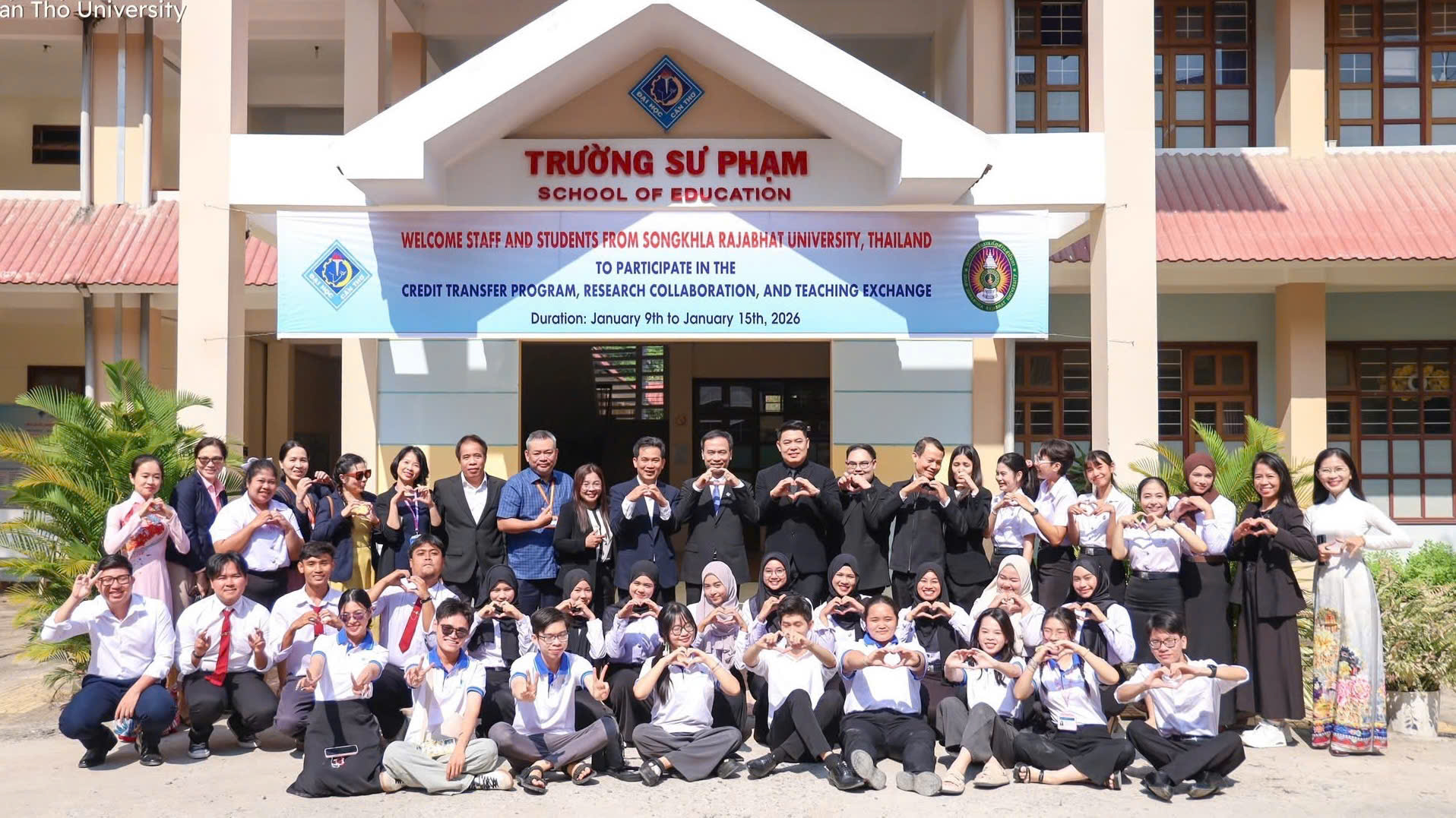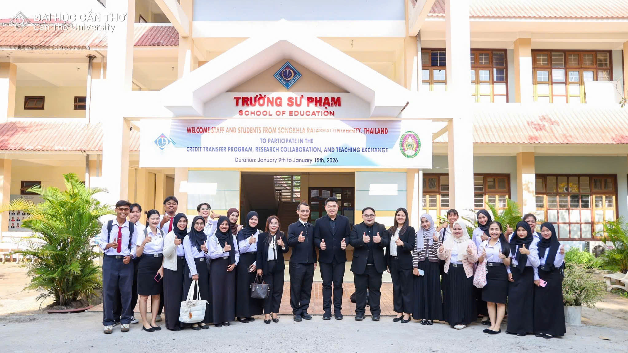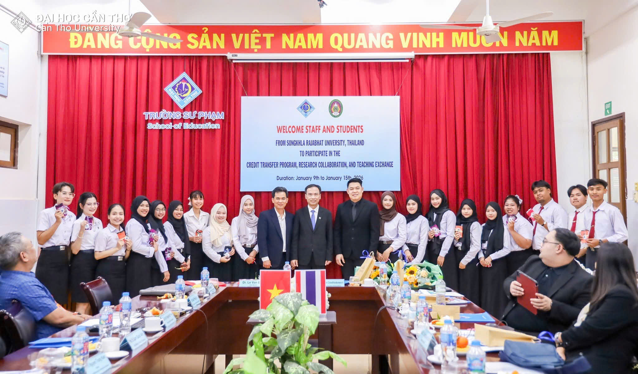 Trong không khí hân hoan chào đón năm mới 2026, vừa qua, Trường Sư phạm (Trường Đại học Cần Thơ) đã long trọng tổ chức buổi tiếp đón và làm việc với đoàn giảng viên, sinh viên Trường Đại học Songkhla Rajabhat (SKRU) – Thái Lan sang thăm, giao lưu và trao đổi tín chỉ.